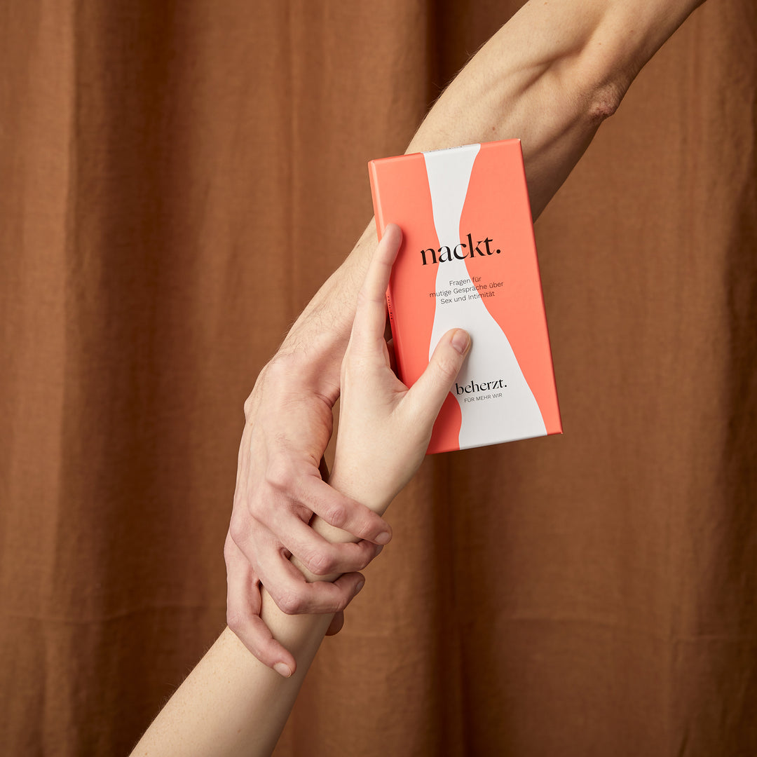 nackt. ist ein Anreiz, sich näher zu kommen – im Dialog und unter der Decke. Das Fragenset umfasst 90 Fragen für Frischverliebte und Langverheiratete, für queere Liebende, alte Bettbekannte und Friends with Benefits – kurzum für alle Menschen, die miteinander schlafen. Das Kartenset wurde mit Sexolog*innen entwickelt und regt zum mutigen Gespräch über Sex und Intimität, Erfahrungen und Bedürfnisse an.
